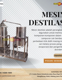 Mesin Destilasi Minyak Mesin destilasi adalah perangkat yang digunakan untuk memisahkan komponen-komponen dalam suatu campuran cair berdasarkan perbedaan titik didih masing-masing zat melalui proses penguapan (evaporasi) dan pengembunan (kondensasi). Video Mesin Destilasi Keunggulan Mesin Destilasi Kapasitas 10 kg Ideal untuk UMKM & Home Industry Kapasitas kecil yang efisien — cocok untuk pelaku usaha pemula… selengkapnya
